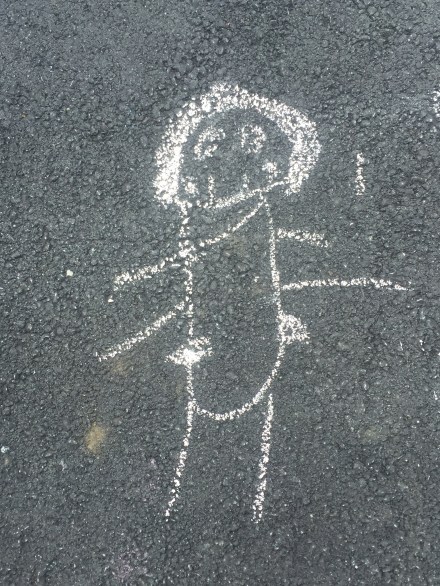 This is Kenley. At first it was her with rosy cheeks, without arms and legs so she looked like a swaddled up baby. Then he gave her hair, and arms and legs (and some weird white circles). He said it was her as a grown up. How sad or a realization that she will never get to be a grown up.