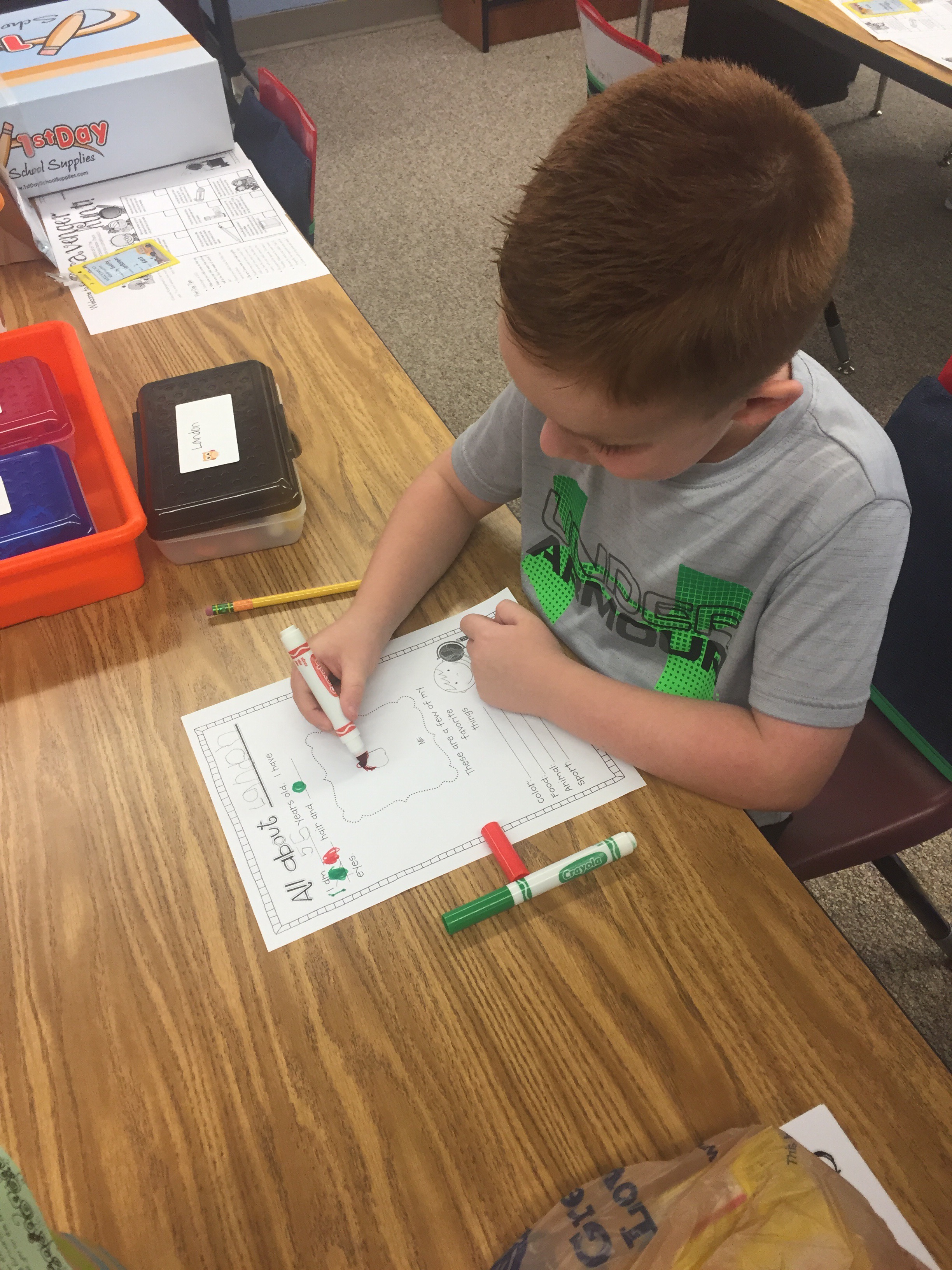 I think that Landon’s teacher will be amazing for him; she was really into his “Self portrait” today, and complimented him on his use of all the colors πŸ™‚