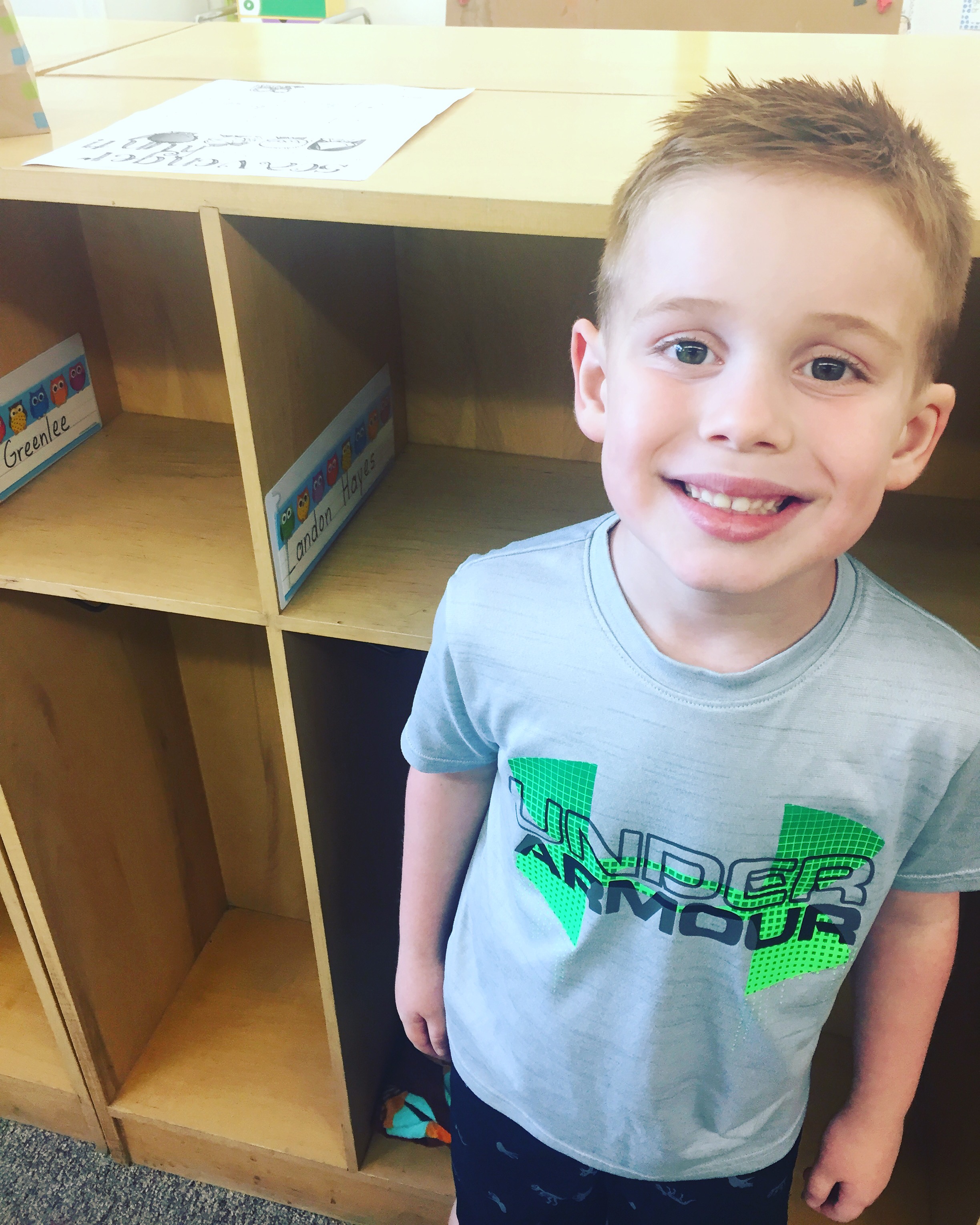 We had open house today, and I think that Landon really enjoyed meeting his teacher. He liked his classroom, and kept looking at all the different things that they had in there. I’m very excited for him to go tomorrow. I, however, had to stop myself from crying about 3 times during the open house. It seemed like everyone had a baby sibling (of course a baby girl) in his class; three of them at least. Then, we had to fill out a form about him- basic information- and they asked for sibling names and ages…