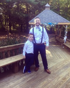 Then…off we went to the ceremony! Everything kind of happened really fast. Landon was the ring bearer, and did a really freakin great job. I couldn’t even believe how good he did. I kind of figured he would be nervous or something, but nope. My little boy is a social butterfly (more to come on this later lol). They were finally married and people were hanging out taking pictures and drinking beer. Around 4:30 the party bus came to pick up the bridal party for photos and ridiculous amounts of booze for those able to drink.
